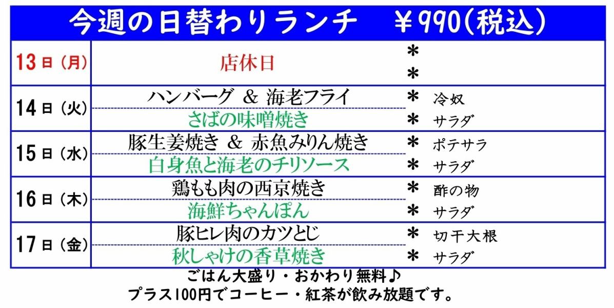 ランチタイムには日替わりランチや和洋食とバリエーション豊かなメニューをご用意しております。